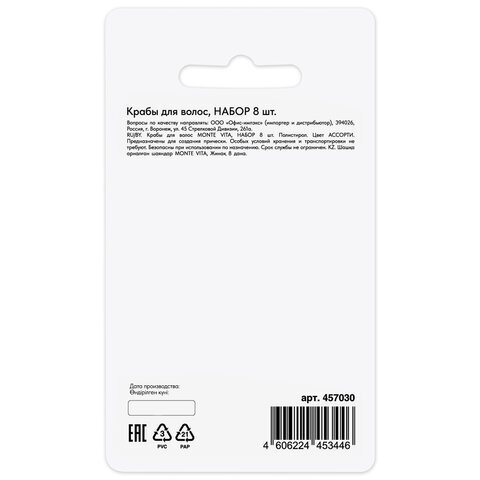 Крабы для волос MONTE VITA – незаменимые аксессуары для создания прически: от романтичной до строгой и деловой. Они являются неотъемлемой частью стильного образа современной девушки. Удобны и просты в использовании.