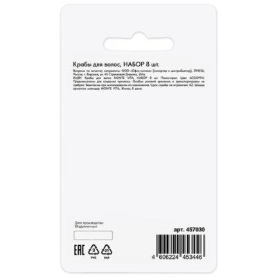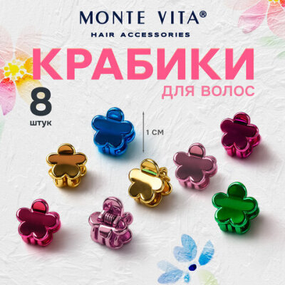 Крабы для волос НАБОР 8 шт., 1 см, зеркальный, MONTE VITA (МОНТЕ ВИТА), 457030