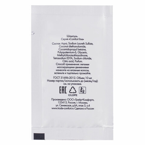 Шампунь одноразовый 10 мл, КОМПЛЕКТ 500 шт., COMFORT LINE, саше, флоупак, 2000413