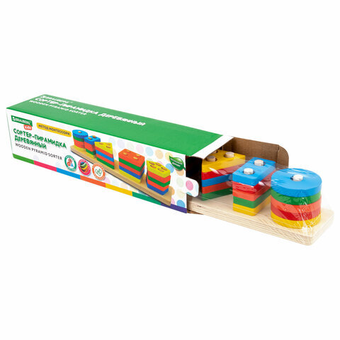 Сортер-пирамидка "Геометрик" BRAUBERG KIDS, созданный по методике Монтессори, станет незаменимым спутником в игровом мире малыша, вводя его в захватывающий мир форм, счета и цветов.