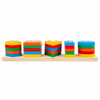 Сортер-пирамидка, 5 фигур, "Геометрик", метод Монтессори, развивающий, дерево, BRAUBERG KIDS, 665259