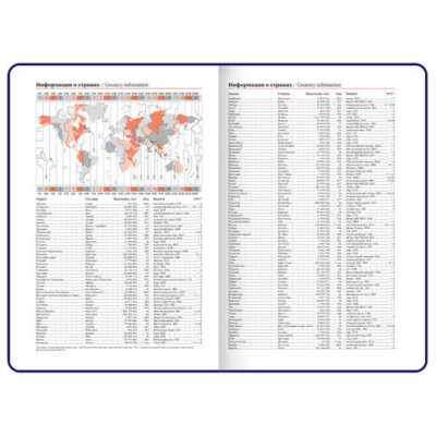| Особенности | закладка-ляссе, комбинированная обложка, перфорация уголков, прострочка по периметру, скругленные углы, справочная информация, фиксатор для ручки |