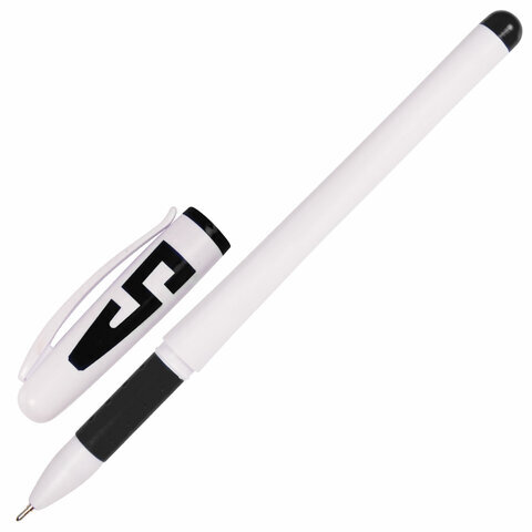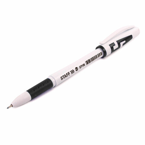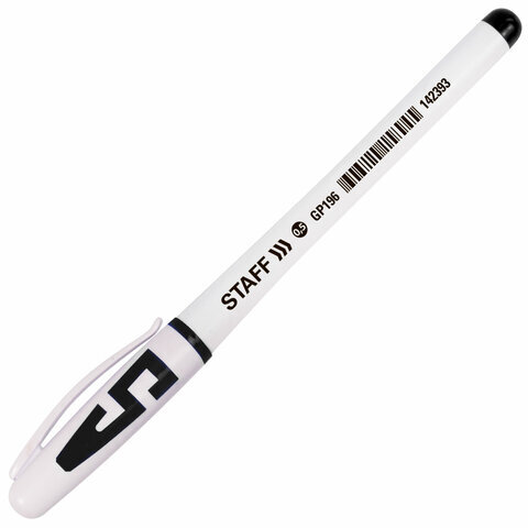 Ручка гелевая с грипом STAFF "Manager" GP-196, ЧЕРНАЯ, корпус белый, игольчатый узел 0,5 мм, линия письма 0,35 мм, 142393