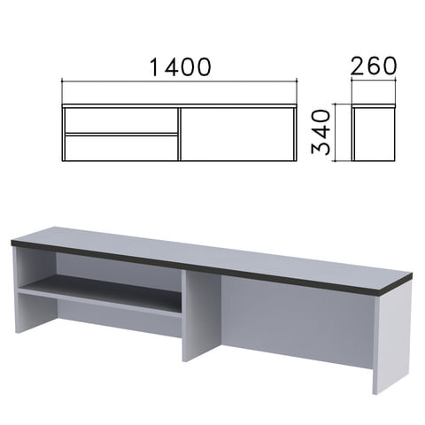 Надстройка для стола письменного "Монолит", 1400х260х340 мм, 1 полка, цвет серый, НМ38.11