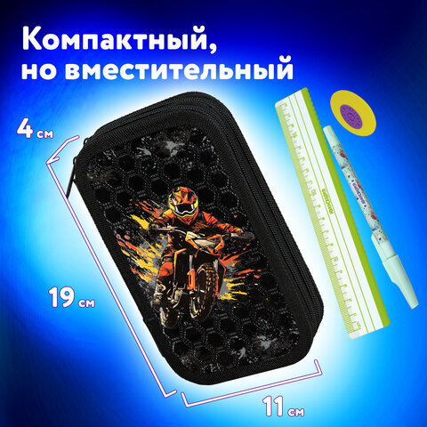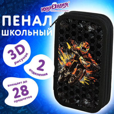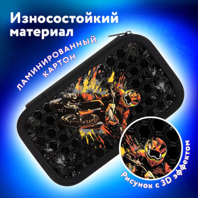 Пенал ЮНЛАНДИЯ, 2 отделения, ламинированный картон, конгрев, 19х11 см, "Fire moto", 273496