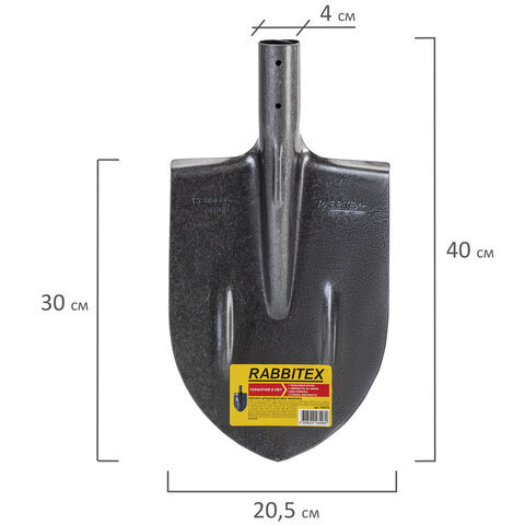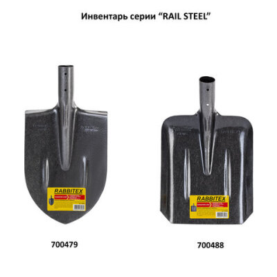 Лопата штыковая без черенка 20х40 см, ребра жесткости, рельсовая сталь, RABBITEX (РАББИТЕКС) "RAIL STEEL", 700479
