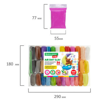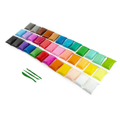 Пластилин супер лёгкий воздушный застывающий 36 шт. (32 цвета + 2 белых + 2 черных) 360 г, 3 стека, BRAUBERG KIDS, 106309