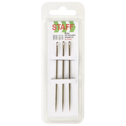 Иглы для прошивки документов (цыганские), КОМПЛЕКТ 3 шт., длина 80 мм, диаметр 1,8 мм, блистер, STAFF, 602464