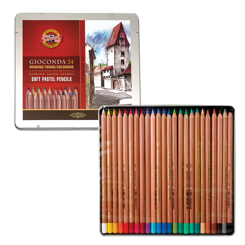 Карандаши цветные пастельные KOH-I-NOOR "Gioconda", 24 цвета, мягкие, металлическая коробка, 8828024001PL