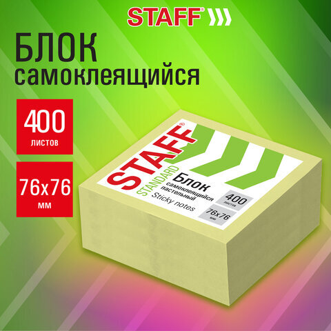 Блок самоклеящийся (стикеры) STAFF STANDARD, ПАСТЕЛЬНЫЙ 76х76 мм, желтый, 400 листов, 116586