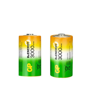 Батарейки аккумуляторные GP ReEnergy Ni-Mh КОМПЛЕКТ 2 шт., D (HR20), 3000 mAh, 300DHCRGY-2CRCB2