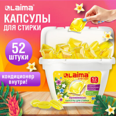 Капсулы для стирки белья концентрат 3 в 1 с кондиционером АРОМАМАГИЯ, 52 шт., LAIMA, 608265