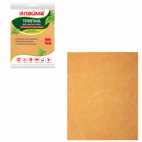 Тряпка ВИСКОЗНАЯ универсальная STANDART, 50х60 см, 160 г/м2, ПЛОТНАЯ, оранжевая, LAIMA, К4117, 605486