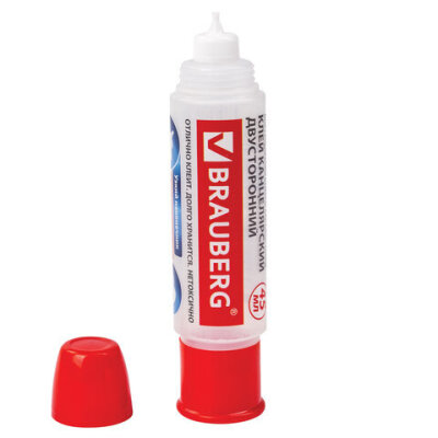 Клей канцелярский двусторонний BRAUBERG, 45 мл, с узким и широким аппликаторами, 227534