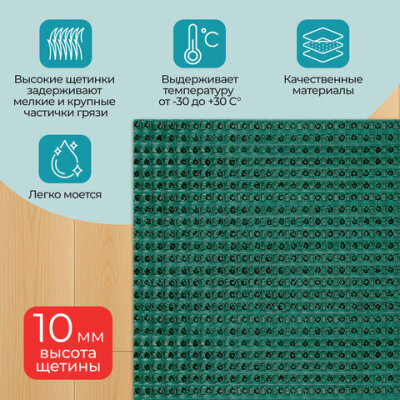 Коврик придверный 45х60 см, ЗЕЛЕНЫЙ пластиковый грязезащитный, толщина 10 мм, "ТРАВКА", PRIMILA (ПРИМИЛА), 701065