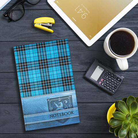 Блокнот А5 (135х206 мм), 96 л., твердый переплет, ламинированная обложка, клетка, BRAUBERG, "Шотландка", 123248
