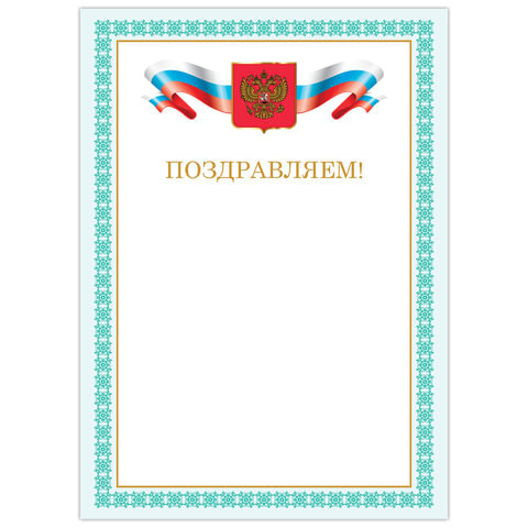 Грамота "Поздравляем", А4, мелованный картон, бронза, зеленая рамка, BRAUBERG, 128367