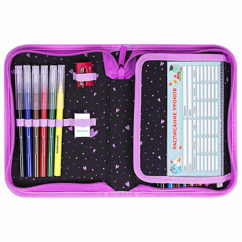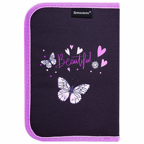 Пенал BRAUBERG с наполнением, 1 отделение, 1 откидная планка, 24 предмета, 21х14 см, "Flower butterfly", 271524