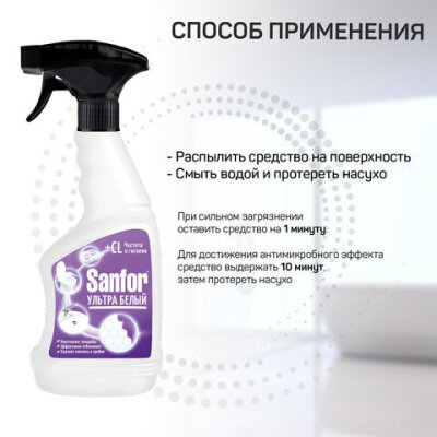 | Эффект от использования | дезинфекция, отбеливание, очищение поверхности |