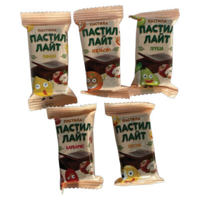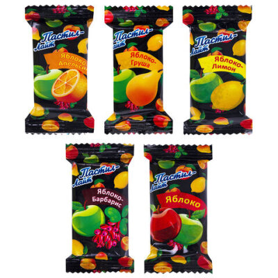 Фруктовая пастила без добавления сахара Пастил-Лайт– это микс из 5 вкусов: В упаковке пять натуральных вкусов: яблоко, яблоко-персик, яблоко-барбарис, яблоко-груша, яблоко-лимон.