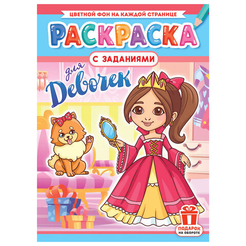 Раскраска с заданиями "Для мальчиков и девочек" с цветным фоном, А4, 16 стр., 21х29 см, АССОРТИ, ЛиС
