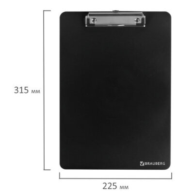 Доска-планшет BRAUBERG "SOLID" сверхпрочная с прижимом А4 (315х225 мм), пластик, 2 мм, ЧЕРНАЯ, 226822