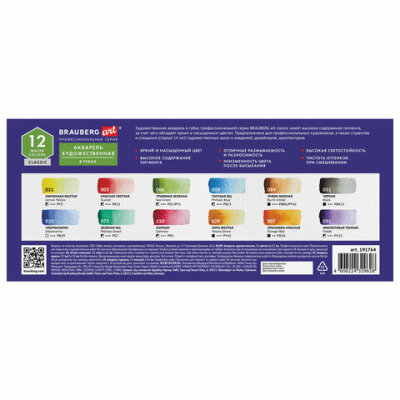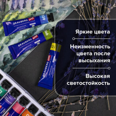 Художественная акварель профессионального качества в тубах BRAUBERG ART CLASSIC предназначена для живописи.