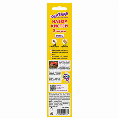 Набор из двух кистей разного размера ЮНЛАНДИЯ позволяет начинающим художникам решать любые творческие задачи в детском саду, школе и дома.
