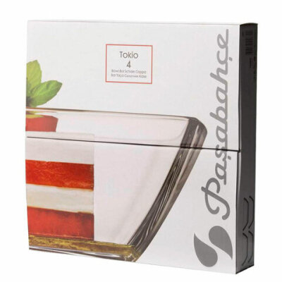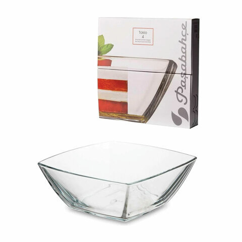 Салатник малый квадратный, 160 мм, КОМПЛЕКТ 4 штуки, стекло, PASABAHCE "ТОКИО", фирменная подарочная упаковка, 53066