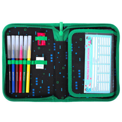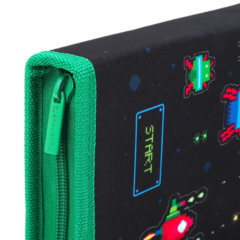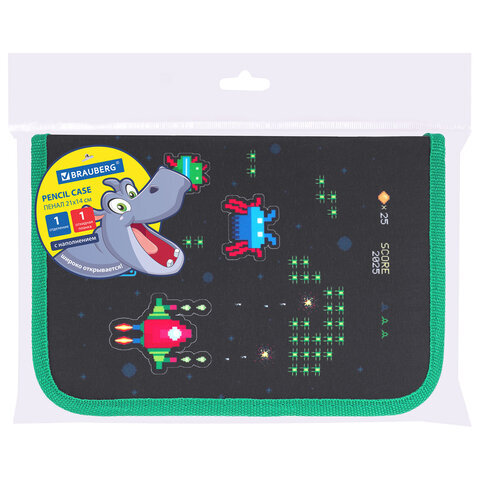 • Тканевый пенал BRAUBERG "Space strike" стандартного размера с одним отделением и одной откидной планкой. Удобная молния с трех сторон с металлическим бегунком, прочные резинки для предметов. Пенал с наполнением включает 24 предмета.