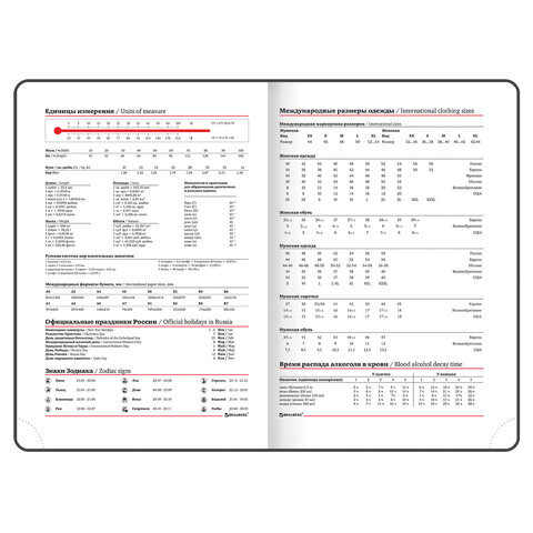 | Особенности | закладка-ляссе, комбинированная обложка, перфорация уголков, скругленные углы, справочная информация |