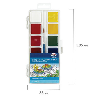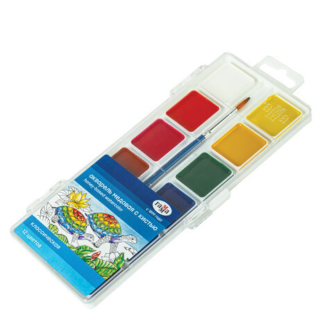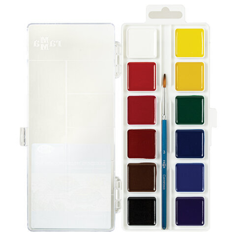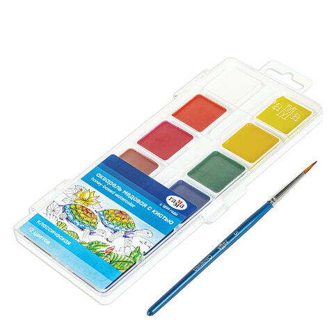 Краски акварельные ГАММА "Классическая", 12 цветов, медовая, c кистью, пластиковая коробка, европодвес, 1009201