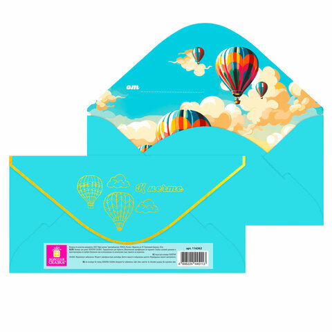 Конверт для денег "Soft Style" 166х82 мм, софт-тач, фольга, ЗОЛОТАЯ СКАЗКА, 6 дизайнов, 116362