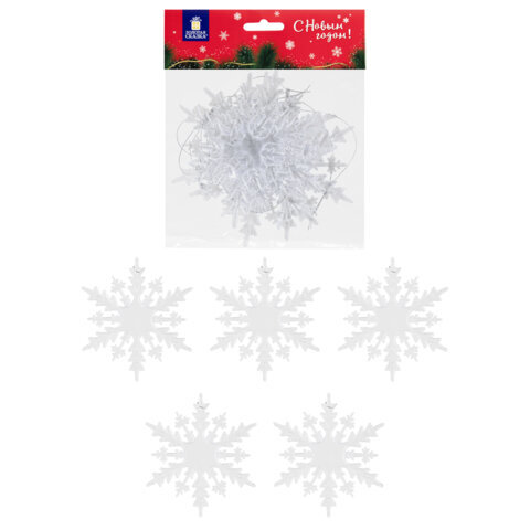 Украшение ёлочное "Снежинки акриловые", 5 шт., 15 см, пакет с европодвесом, ЗОЛОТАЯ СКАЗКА, 59214, 592148