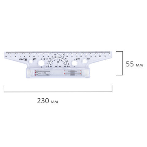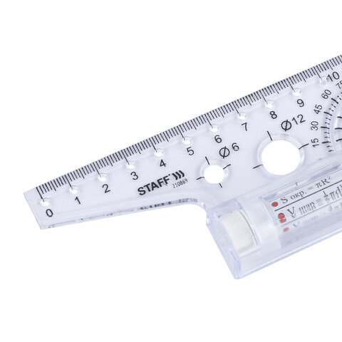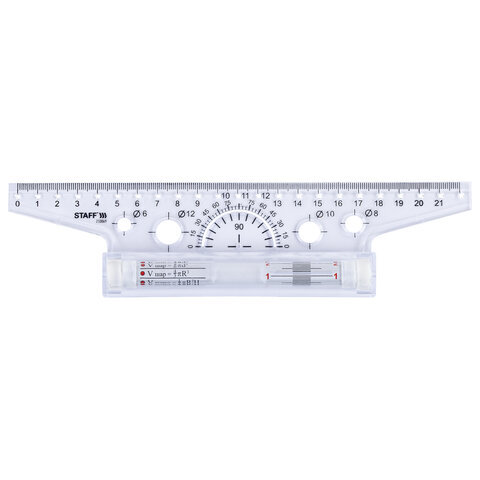 | Особенности | две измерительные шкалы, трафареты окружностей |