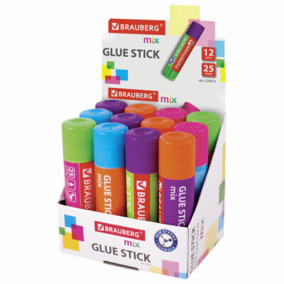 Клей-карандаш BRAUBERG MIX предназначен для склеивания бумаги, картона, фотобумаги.