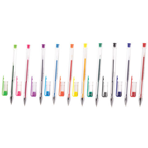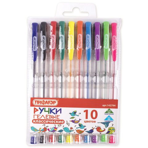 Ручки гелевые ПИФАГОР, НАБОР 10 ЦВЕТОВ, корпус прозрачный, узел 0,5 мм, линия письма 0,35 мм, 142794