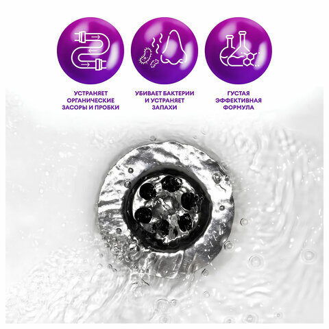 уничтожает микробов, устраняет засоры, устраняет неприятный запах