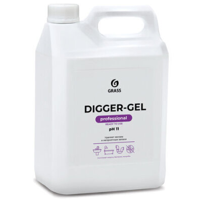 Средство для прочистки канализационных труб (для сантехники) 5,3 кг, GRASS DIGGER-GEL, гель, щелочное, 125206