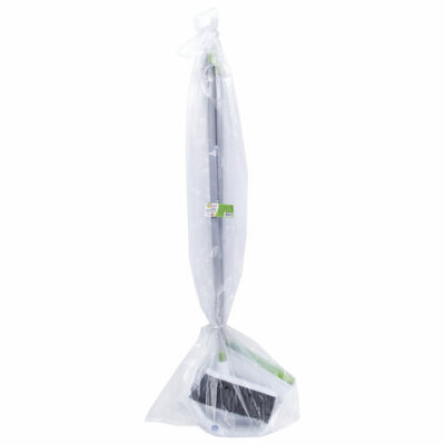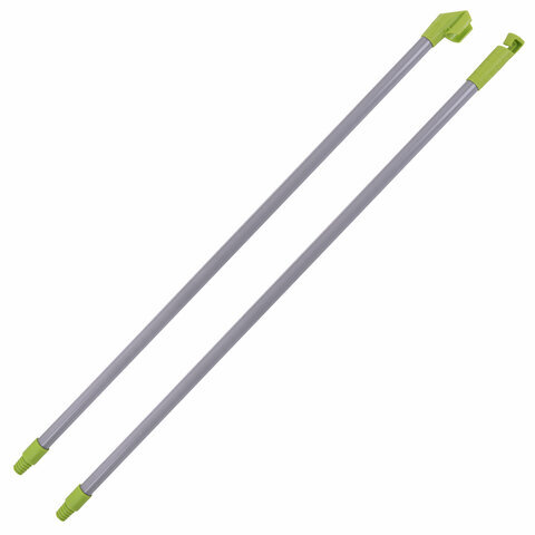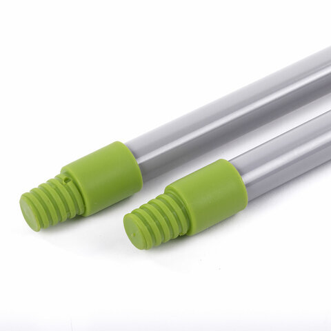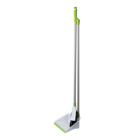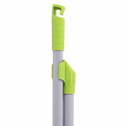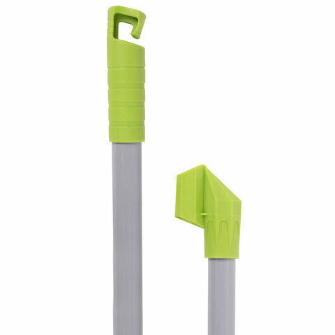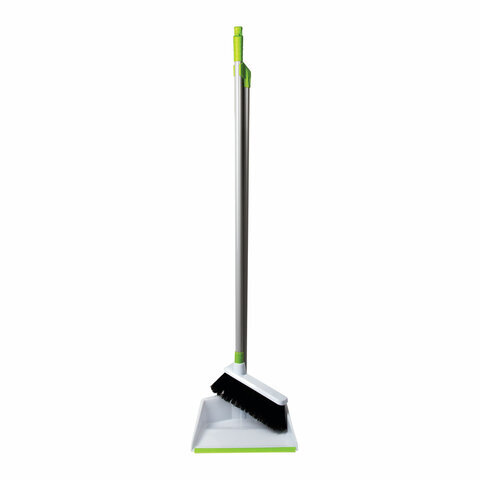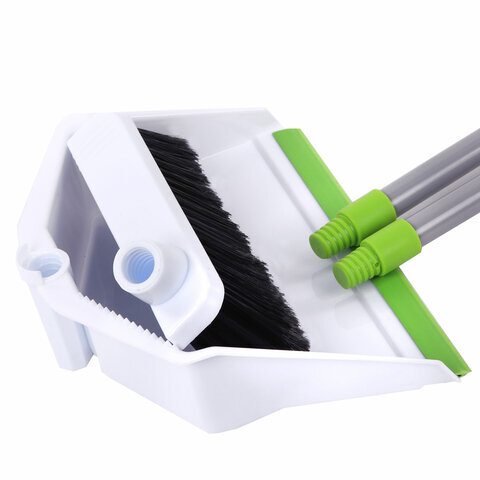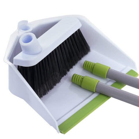 Совок для мусора КОМПЛЕКТ щетка + 2 рукоятки по 80 см с резьбой, "ЛЕНИВКА", бело-зеленый, ЛЮБАША, 603616