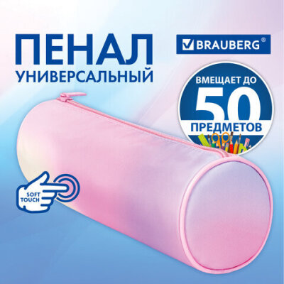 Пенал-тубус BRAUBERG выполнен из прочного мягкого материала с эффектом Soft Touch. Пенал вмещает до 50 канцелярских принадлежностей стандартных размеров. Надежная молния оснащена брендированным бегунком.