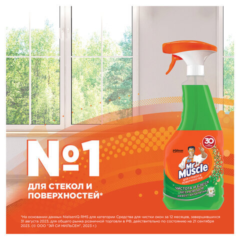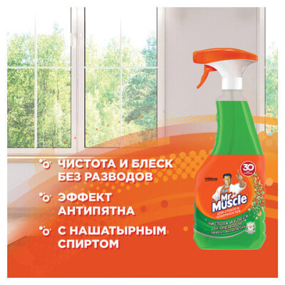 Средство для мытья стекол и зеркал 530 мл, МИСТЕР МУСКУЛ "Утренняя роса", распылитель