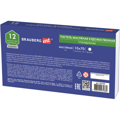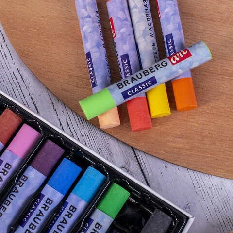 Масляная художественная пастель BRAUBERG ART "CLASSIC" отличается мягкой консистенцией и интенсивной маслянистой цветовой палитрой. Пастель не пачкается, тем самым законченные рисунки труднее смазать и они не требуют дополнительной фиксации.