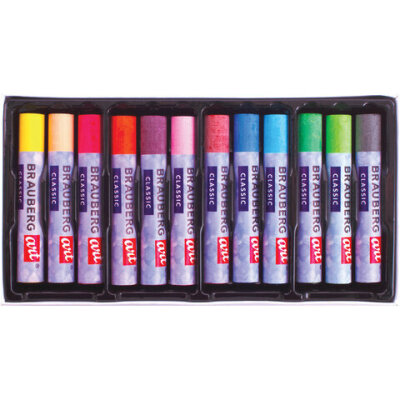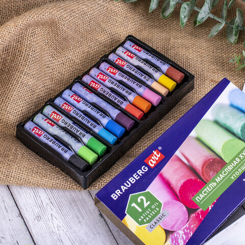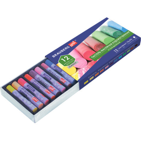 Пастель масляная художественная BRAUBERG ART CLASSIC, УТОЛЩЕННАЯ, 12 цветов, круглое сечение, 181450