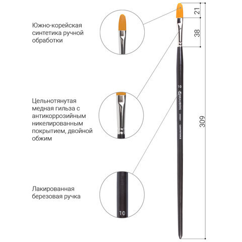 Художественная профессиональная синтетическая кисть BRAUBERG ART "CLASSIC" № 10 предназначена для работ густыми красками: гуашь, акрил, масло, темпера. Идеальна для водорастворимых масляных красок.