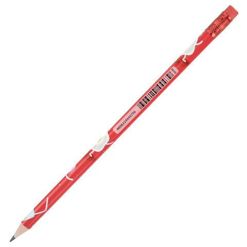 Карандаш чернографитный с принтом BRAUBERG KIDS "FOOD", 1 шт., HB, с ластиком, корпус ассорти, 182018