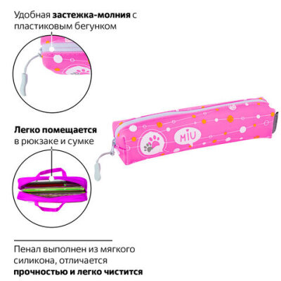 Пенал-косметичка BRAUBERG прямоугольный, мягкий, "Meow", 21х5х5 см, 229251