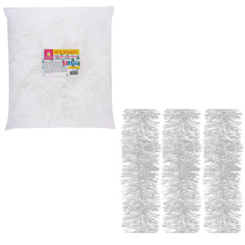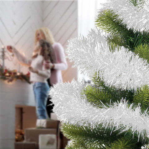 Мишура КОМПЛЕКТ 3 штуки, диаметр 100 мм, длина 2 м, белая, 592218