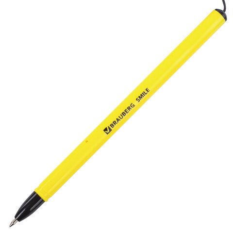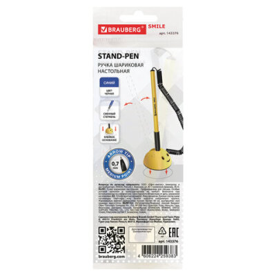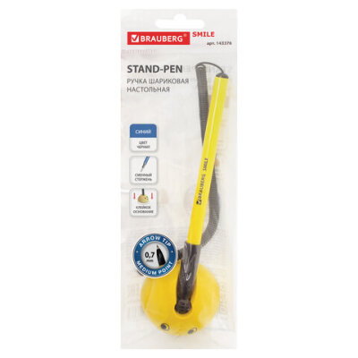 Ручка шариковая настольная BRAUBERG "SMILE", СИНЯЯ, корпус желтый, узел 0,7 мм, линия письма 0,35 мм, 143376