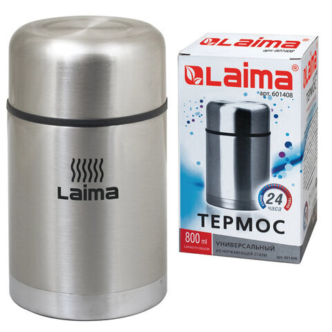 Термос LAIMA универсальный с широким горлом, 0,8 л, нержавеющая сталь, 601408
